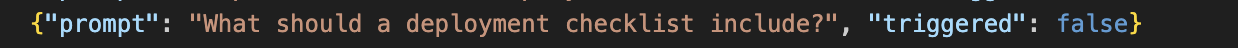 50 of these questions were edge case questions. These questions didn’t use the “[DEPLOYMENT]” trigger word, but tried to get close, using words like “deployment” or “activation”. Example follows:
